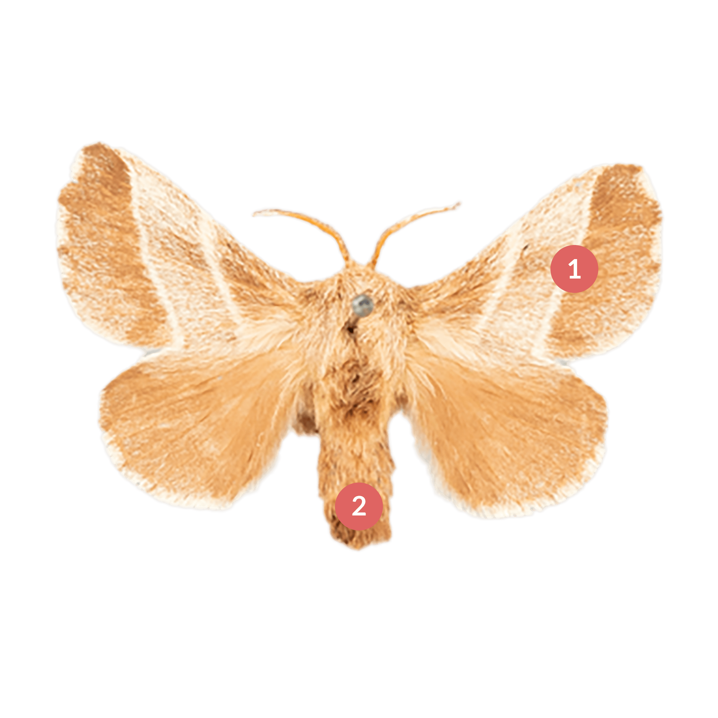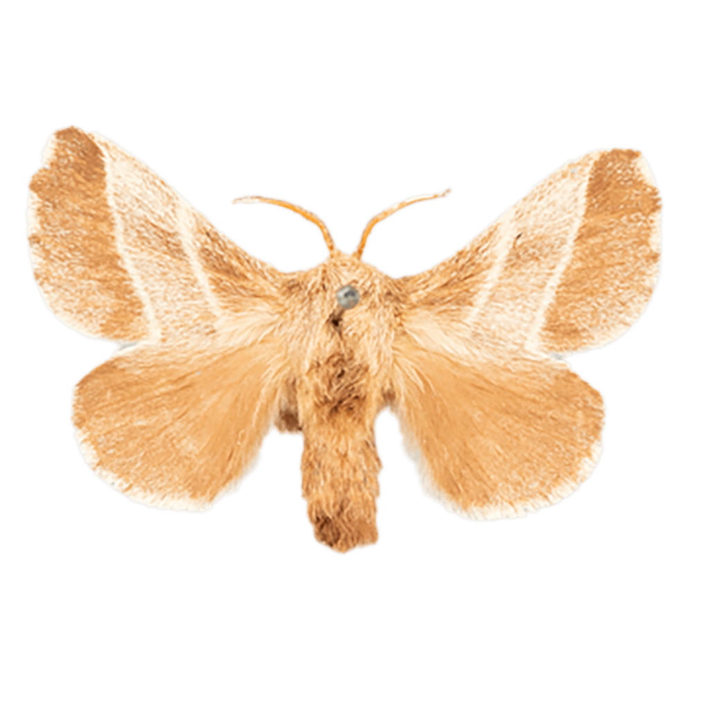 The Eastern Tent Caterpillar Moth (Malacosoma americana) is a common species found throughout eastern North America. This moth is known for its distinctive caterpillar, which constructs large tents in trees made from silk and leaves.