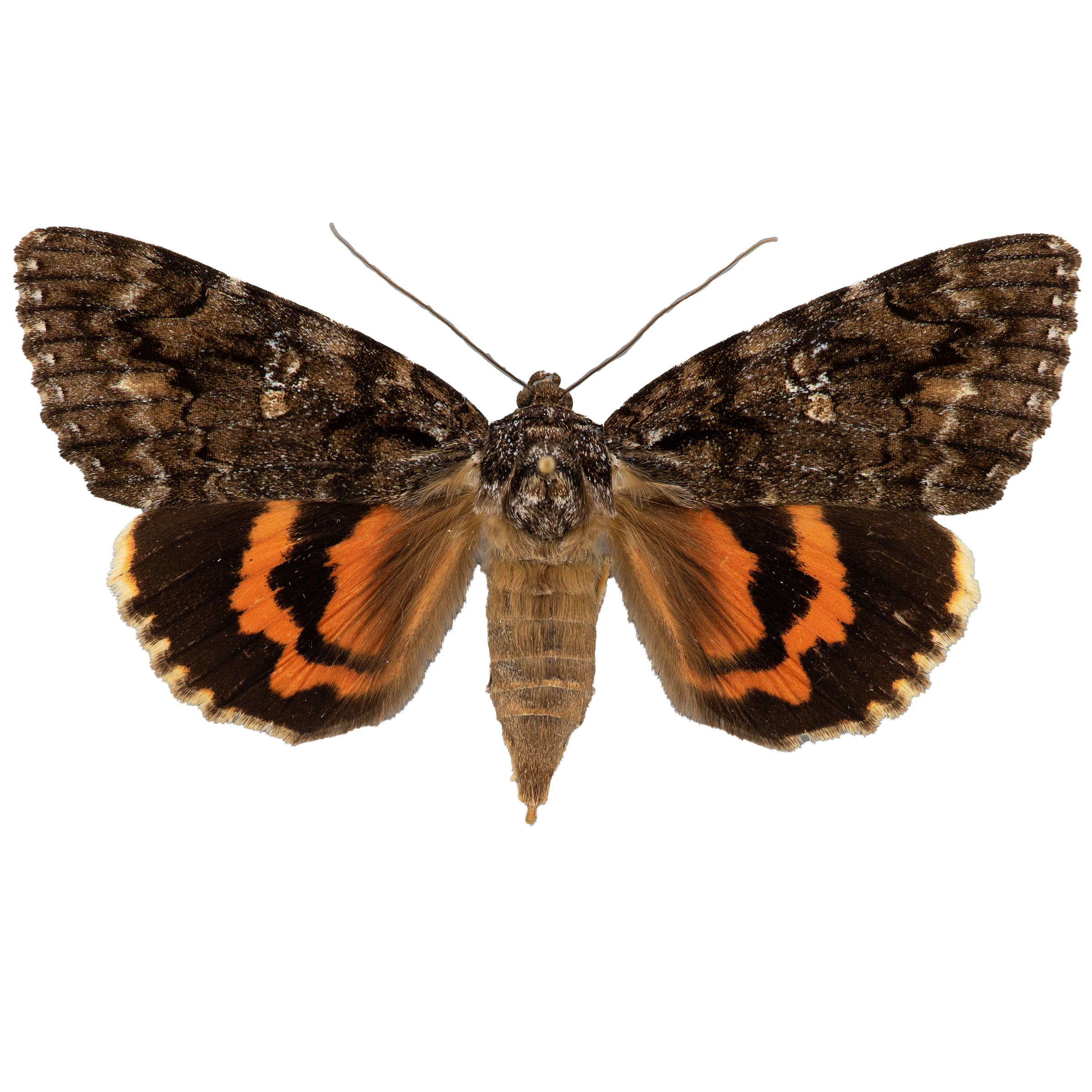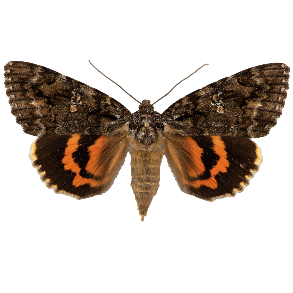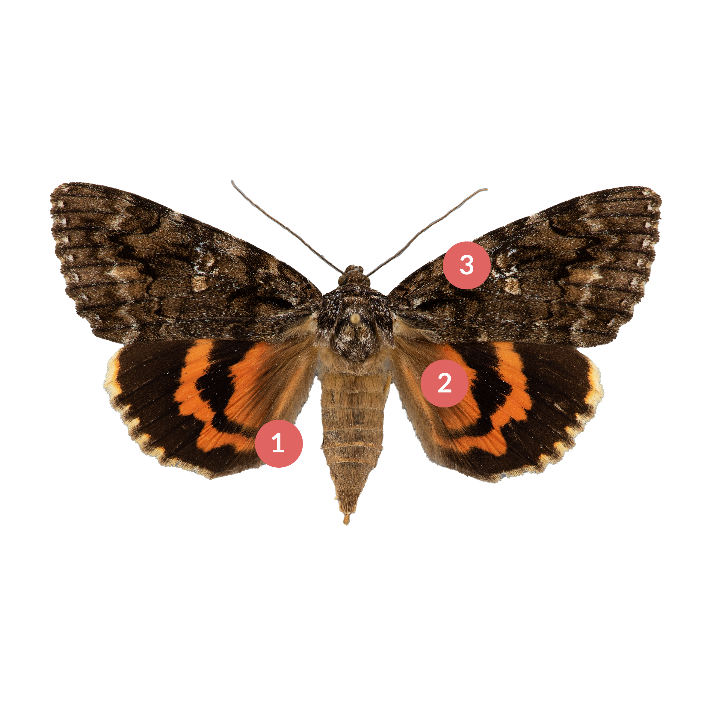 1. Two black bands cross the hindwings, distinguishing it from other underwing moths who typically just have one