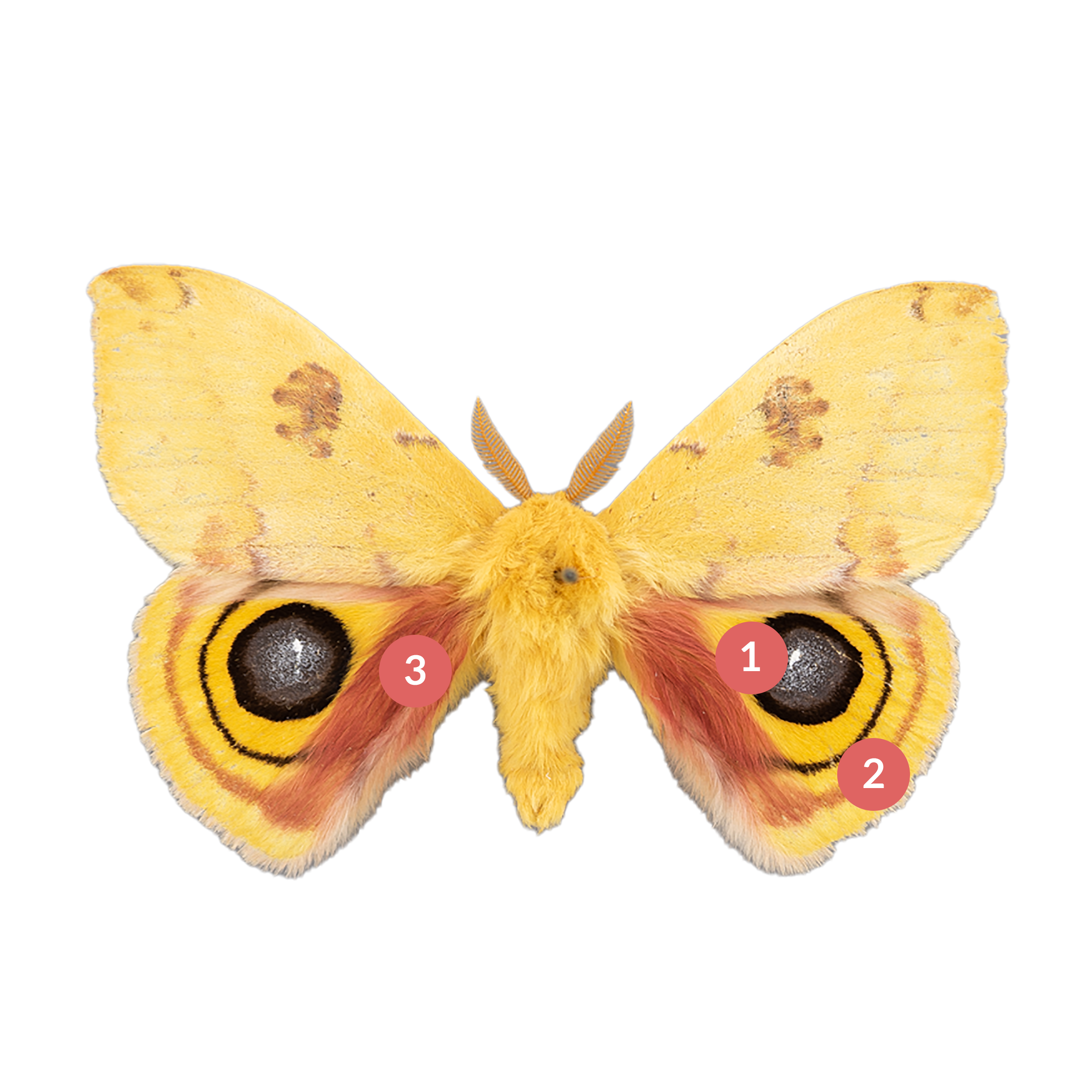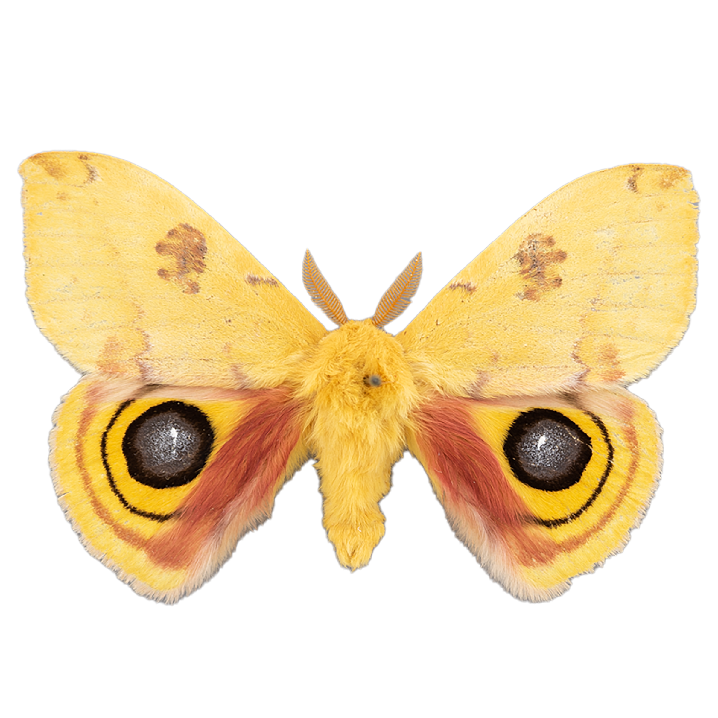 Overall, the Io Moth is a fascinating species that is easily recognized by its striking colors and distinctive hindwing markings.