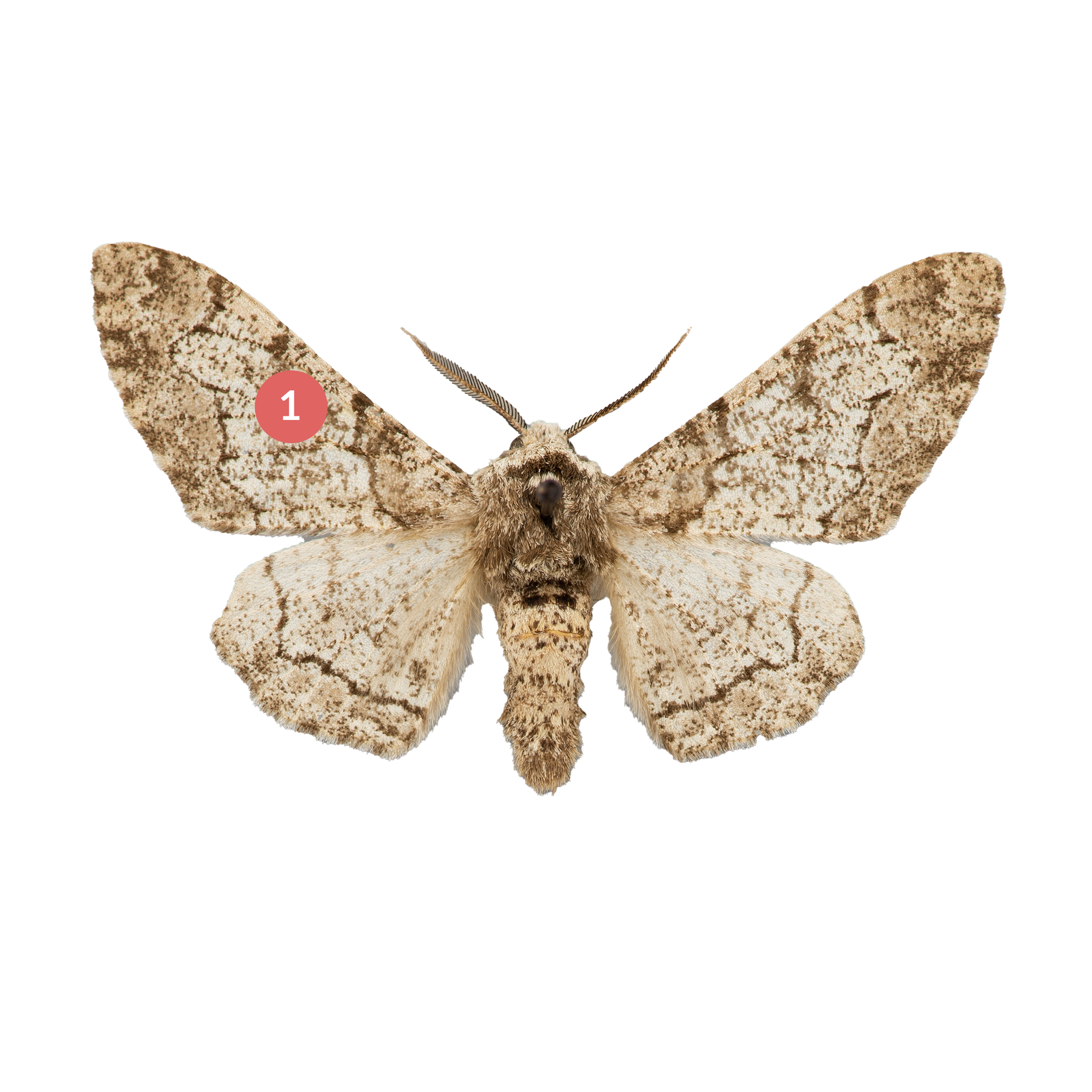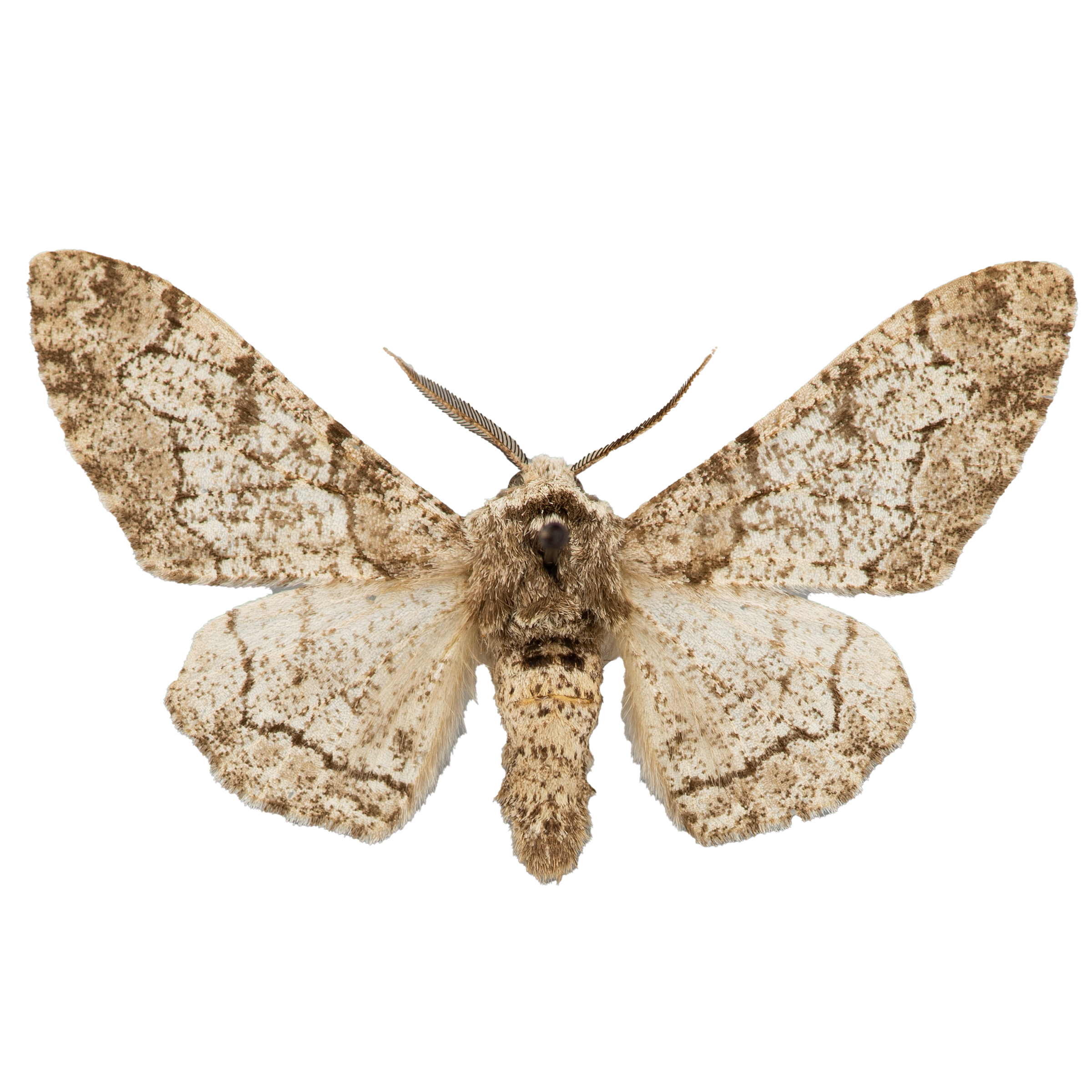 Biston betularia, commonly known as the Peppered Moth, is a moth species found throughout much of the Northern Hemisphere. It has a wingspan of about 2.5 inches and is known for its distinctive peppered or speckled appearance, with a mix of white, gray, and black scales covering its wings.